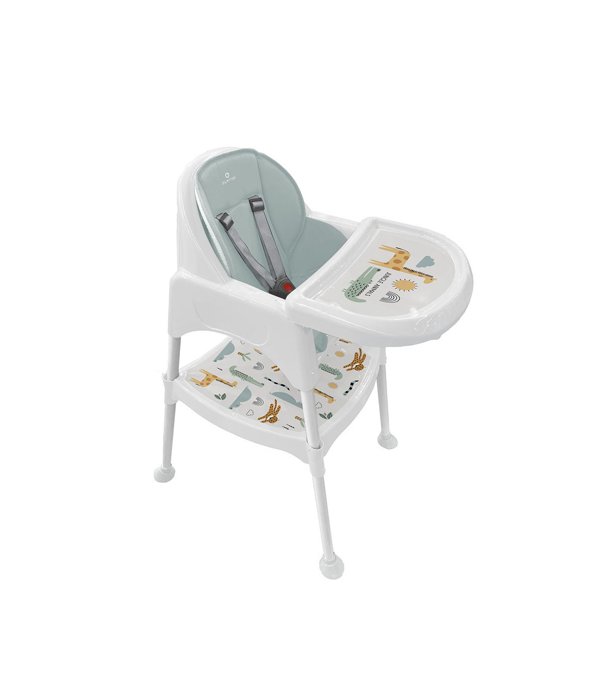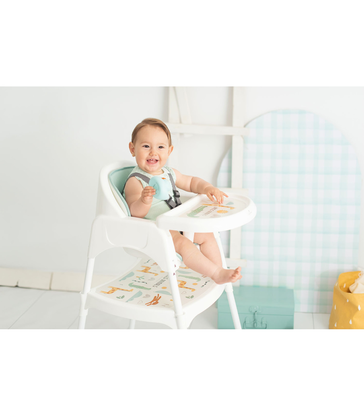 A cadeira evolutiva 3 em 1 adapta-se às necessidades em mudança do seu bebé, proporcionando uma plataforma segura e confortável para desfrutar das suas refeições e atividades.