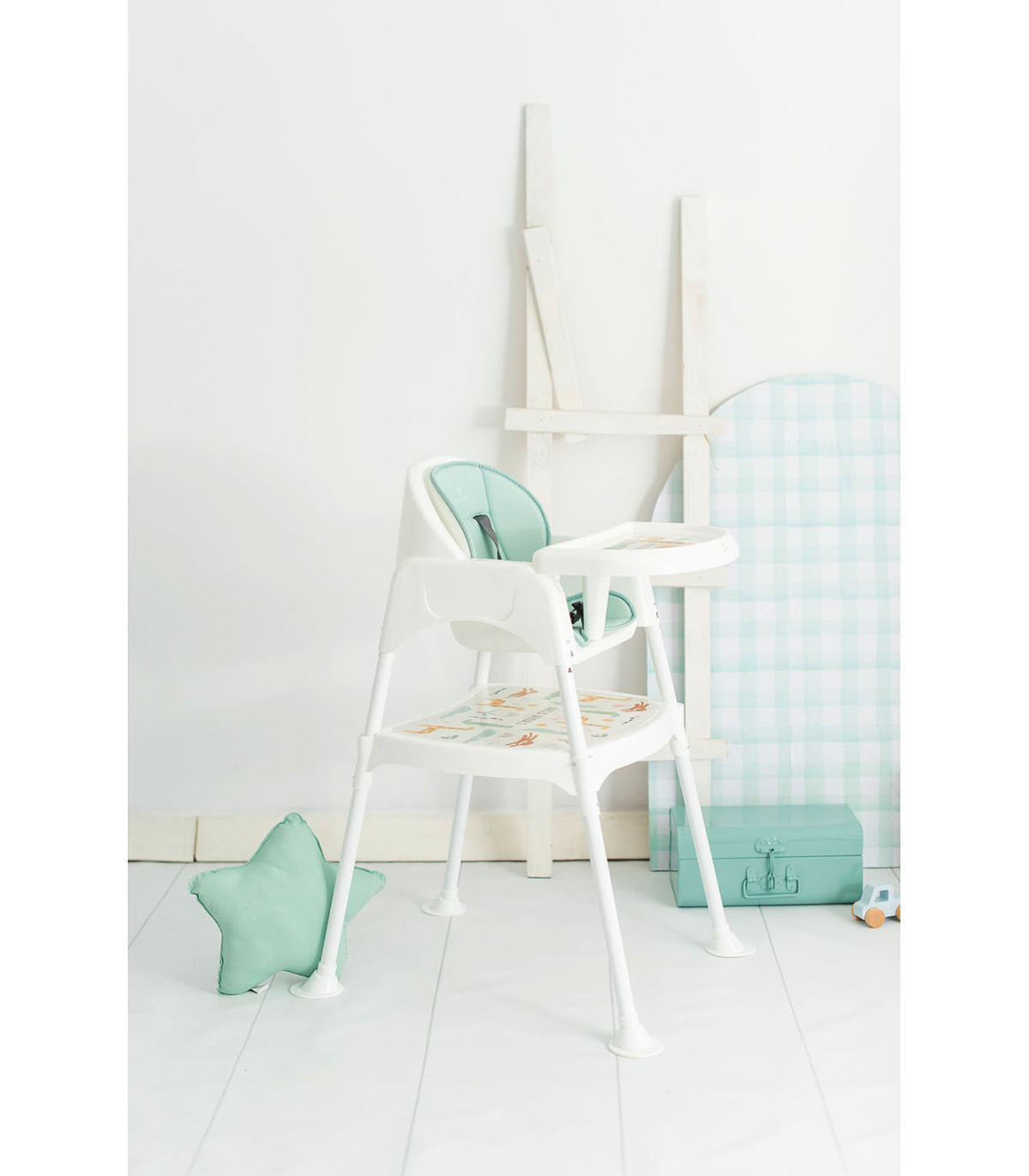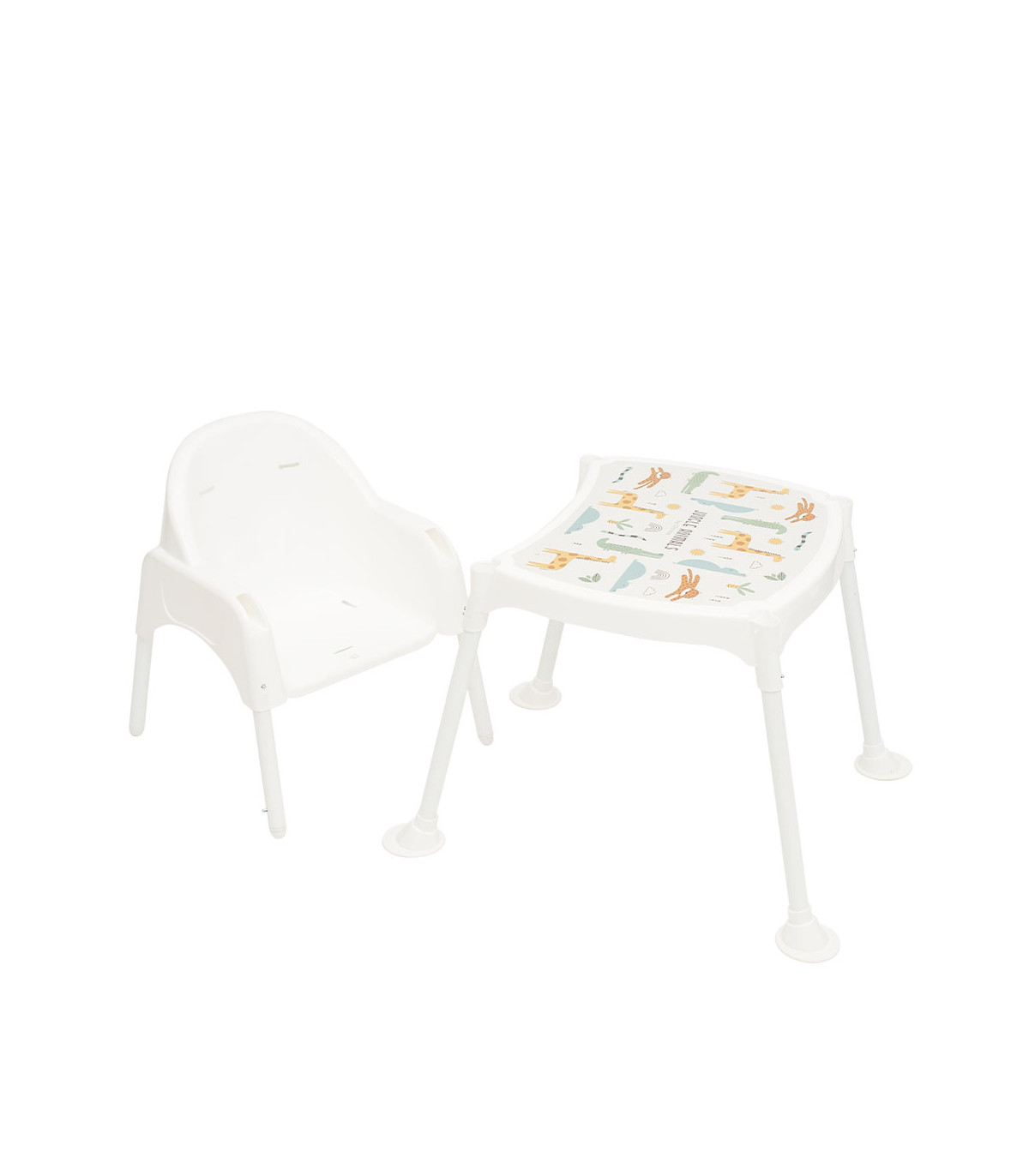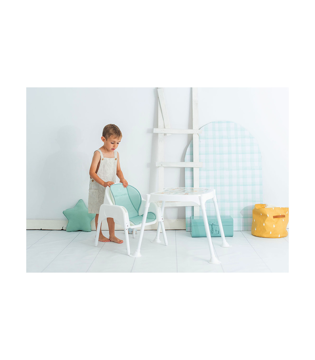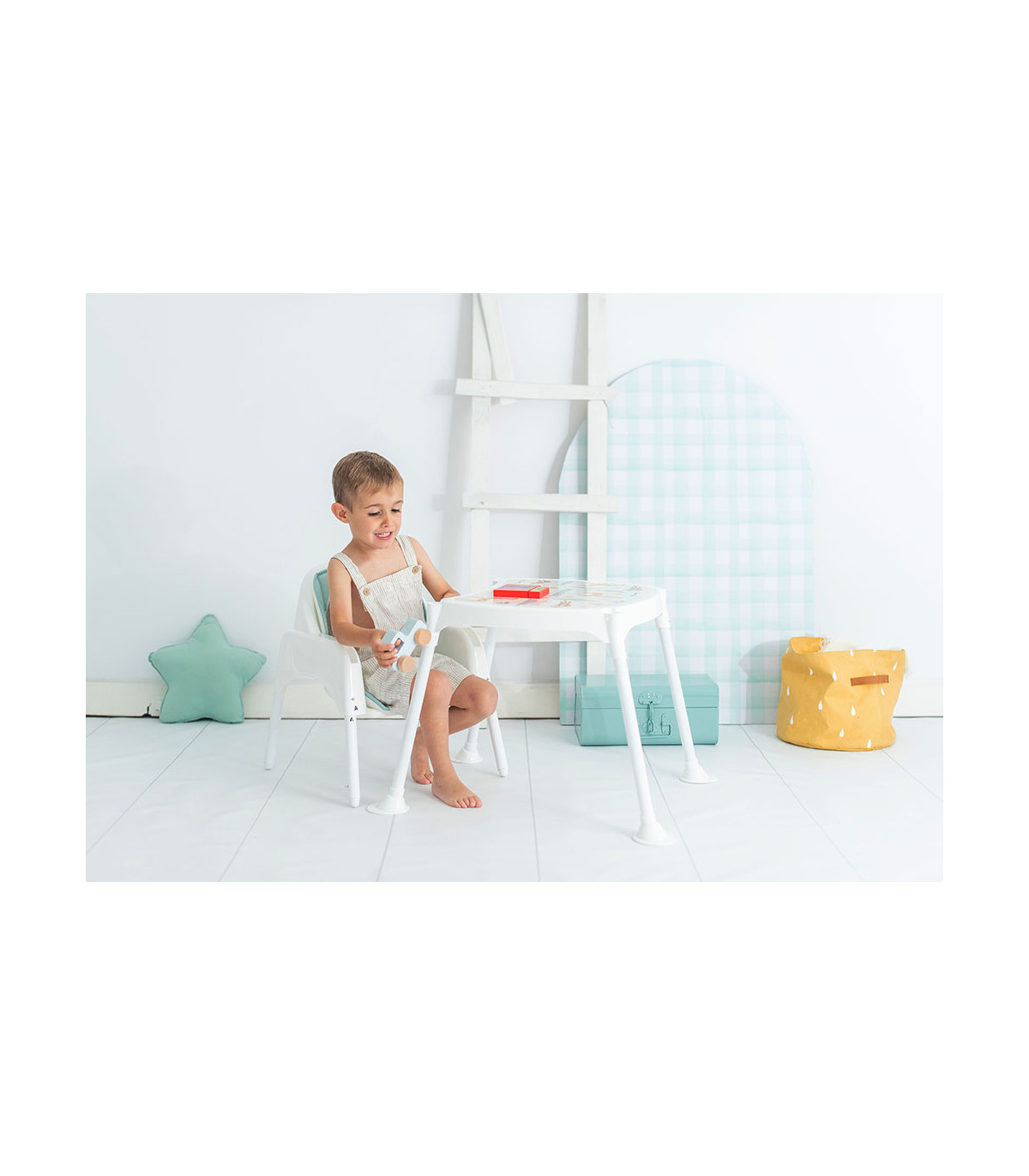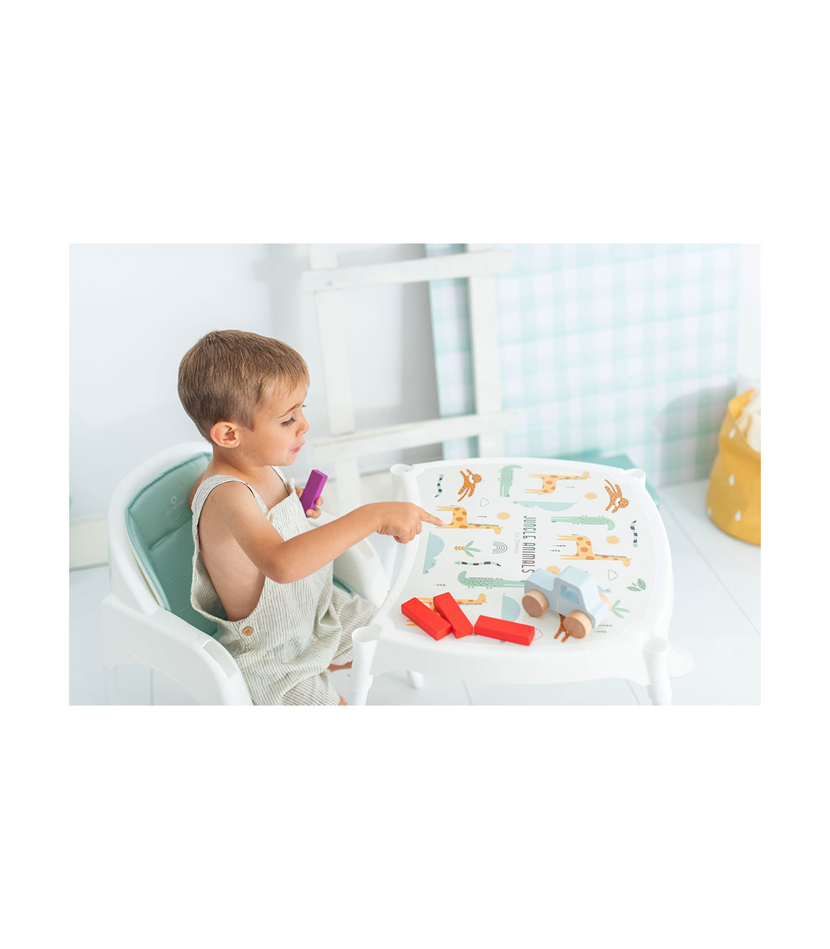 Oferece três etapas de uso diferentes. Na primeira etapa, funciona como uma cadeira de bebé tradicional, com um assento acolchoado e um arnês de segurança ajustável para manter o seu bebé confortável e seguro durante as refeições. A bandeja removível e fácil de limpar é perfeita para colocar a comida e os utensílios do bebé. Conforme o seu filho cresce, a cadeira transforma-se numa prática mesa e cadeira infantil. Retire o assento da base para transformá-lo numa mesa baixa e numa cadeira ergonómica. Esta configuração é ideal para que as crianças mais velhas realizem atividades criativas, como desenhar, fazer artesanato ou ler.