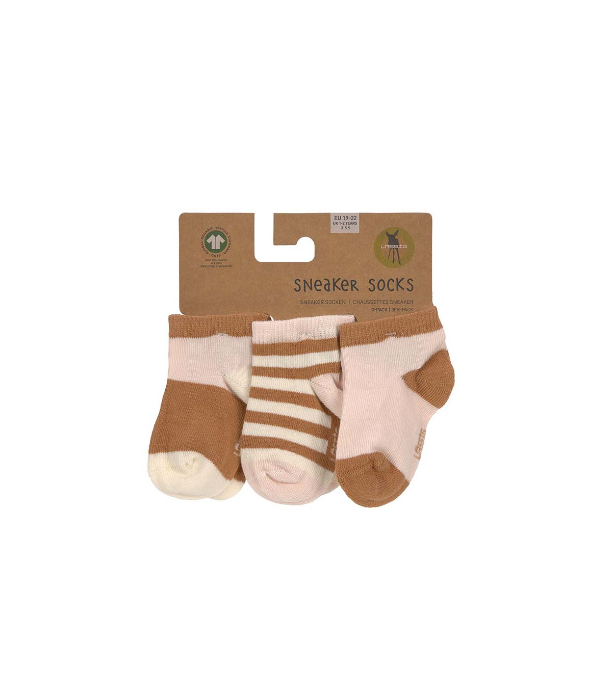 As meias desportivas para crianças têm uma alta percentagem de algodão orgânico (GOTS), são respiráveis e têm uma perna particularmente curta. A bainha elástica canelada proporciona uma boa aderência.