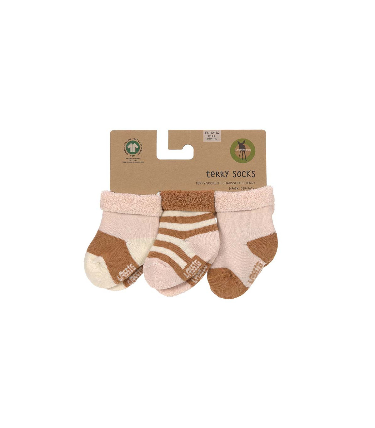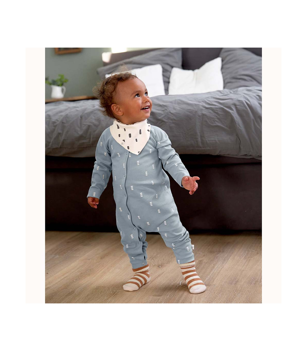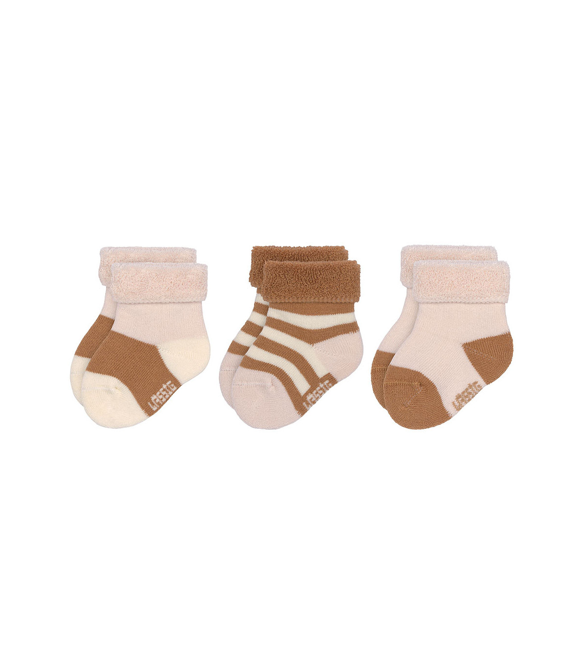 Meias de pelúcia suaves e quentes para recém-nascidos. A banda dupla na parte superior mantém os pés do bebé confortáveis e protegidos do frio. Feitas de algodão orgânico, são respiráveis e macias para a pele sensível do bebé.