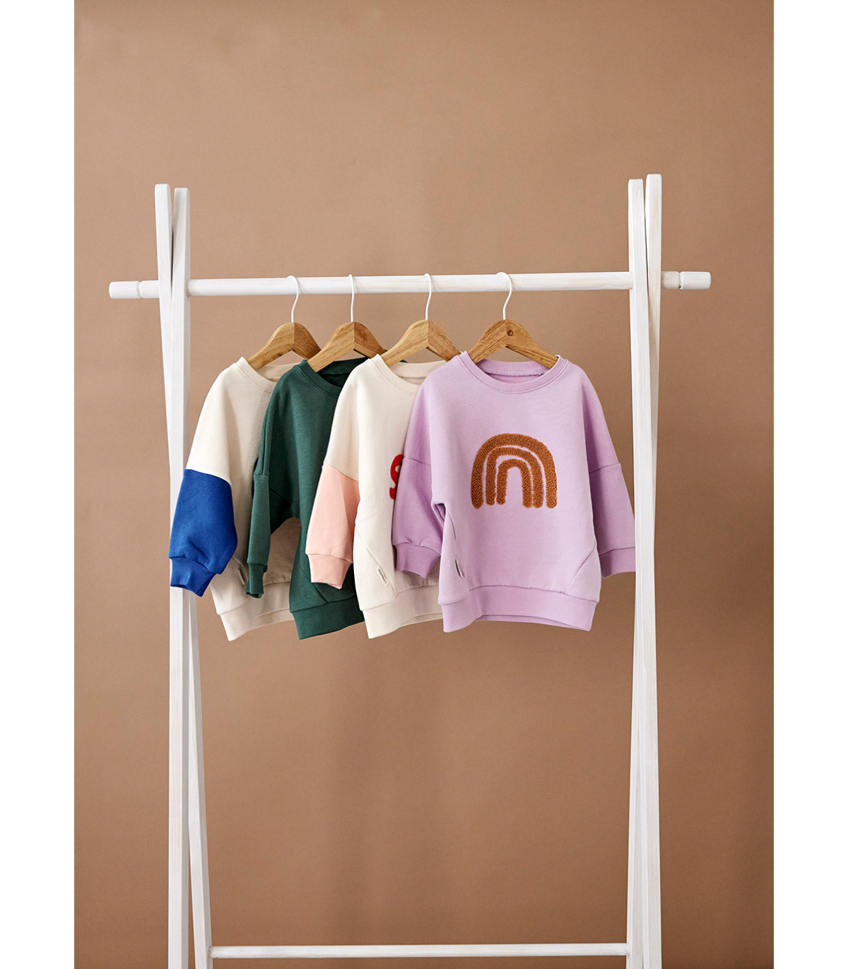 Este confortável moletom infantil se destaca pelo seu estilo chamativo e moderno. Feito em algodão orgânico macio com certificação GOTS, oferece um toque agradável e grande conforto para uso diário. Seus desenhos coloridos em 3D dão um toque divertido e original, e as mangas amplas e o corte folgado proporcionam um visual casual perfeito para qualquer ocasião.
