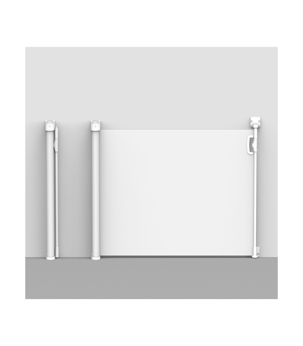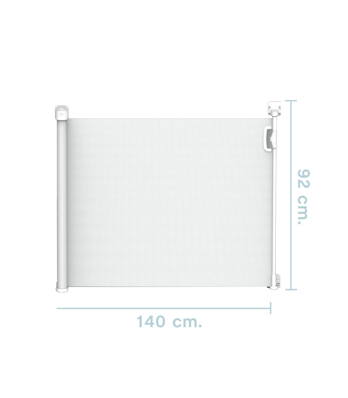 Porta de segurança retrátil que evita quedas e acidentes em casa. Fabricada com uma malha resistente, instala-se em portas ou vãos de até 140 cm de largura. Seu design permite o uso com apenas uma mão e reduz o impacto visual quando está enrolada.