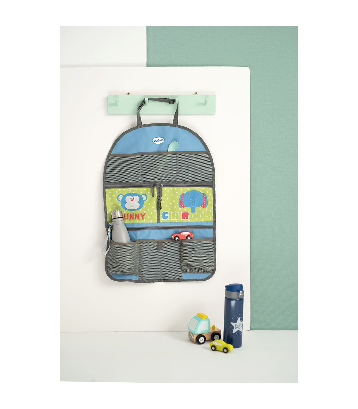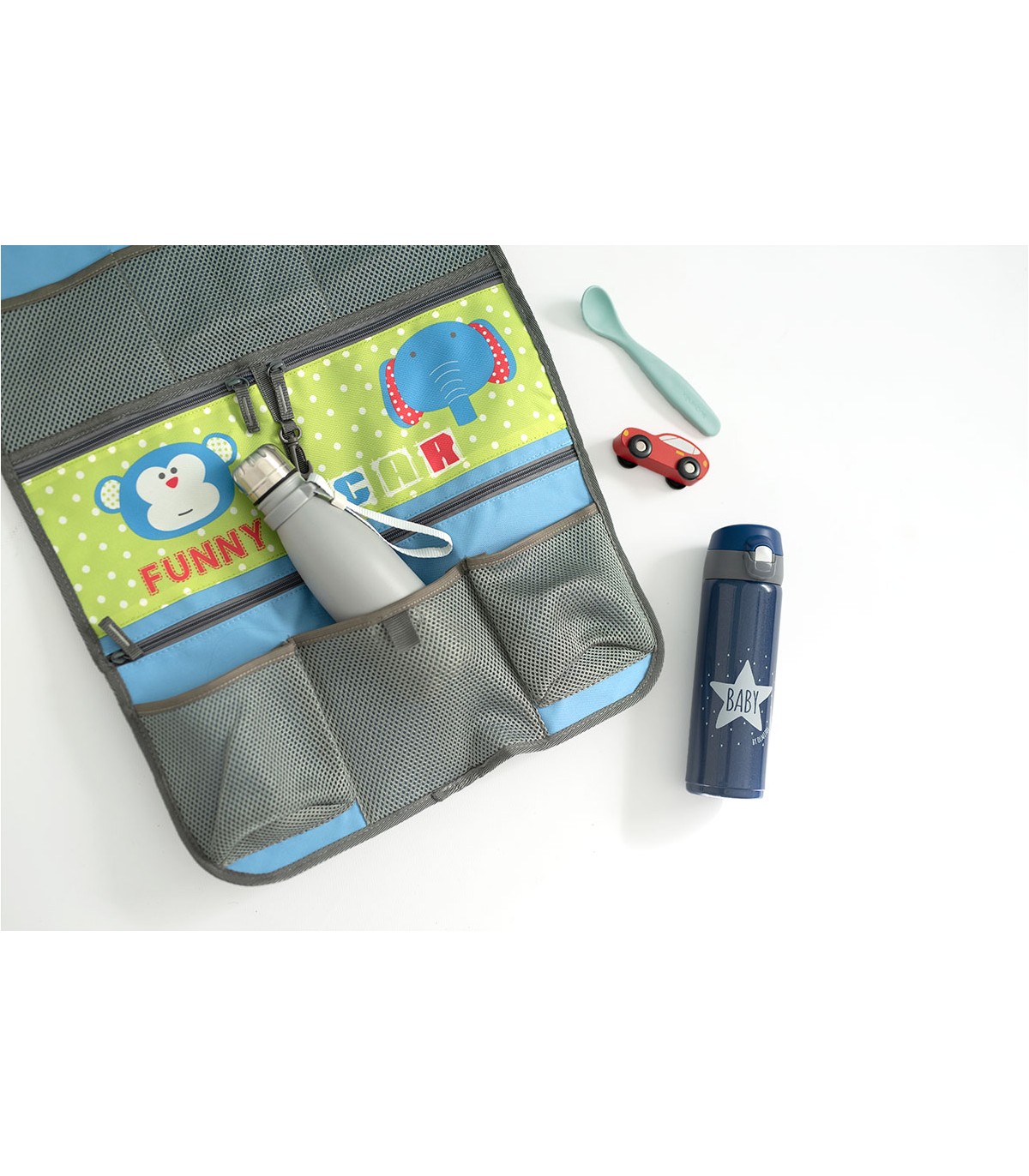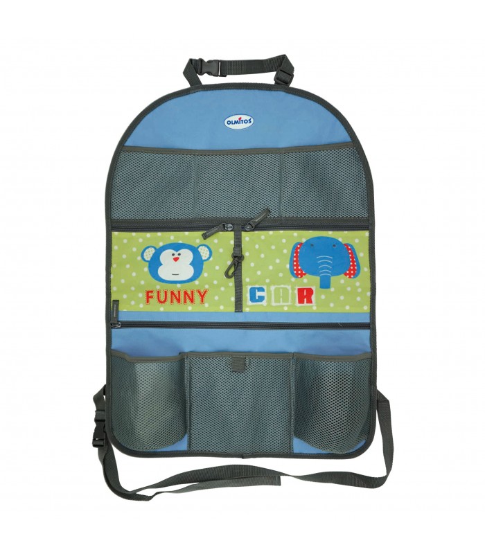 Prático organizador com vários compartimentos perfeito para viajar e levar todos os seus brinquedos, biberões e livros à mão. Eles terão fácil e prático acesso e poderão ser totalmente independentes durante o percurso. Ideal para viagens longas. Além disso, protege o assento de possíveis pontapés ou danos.