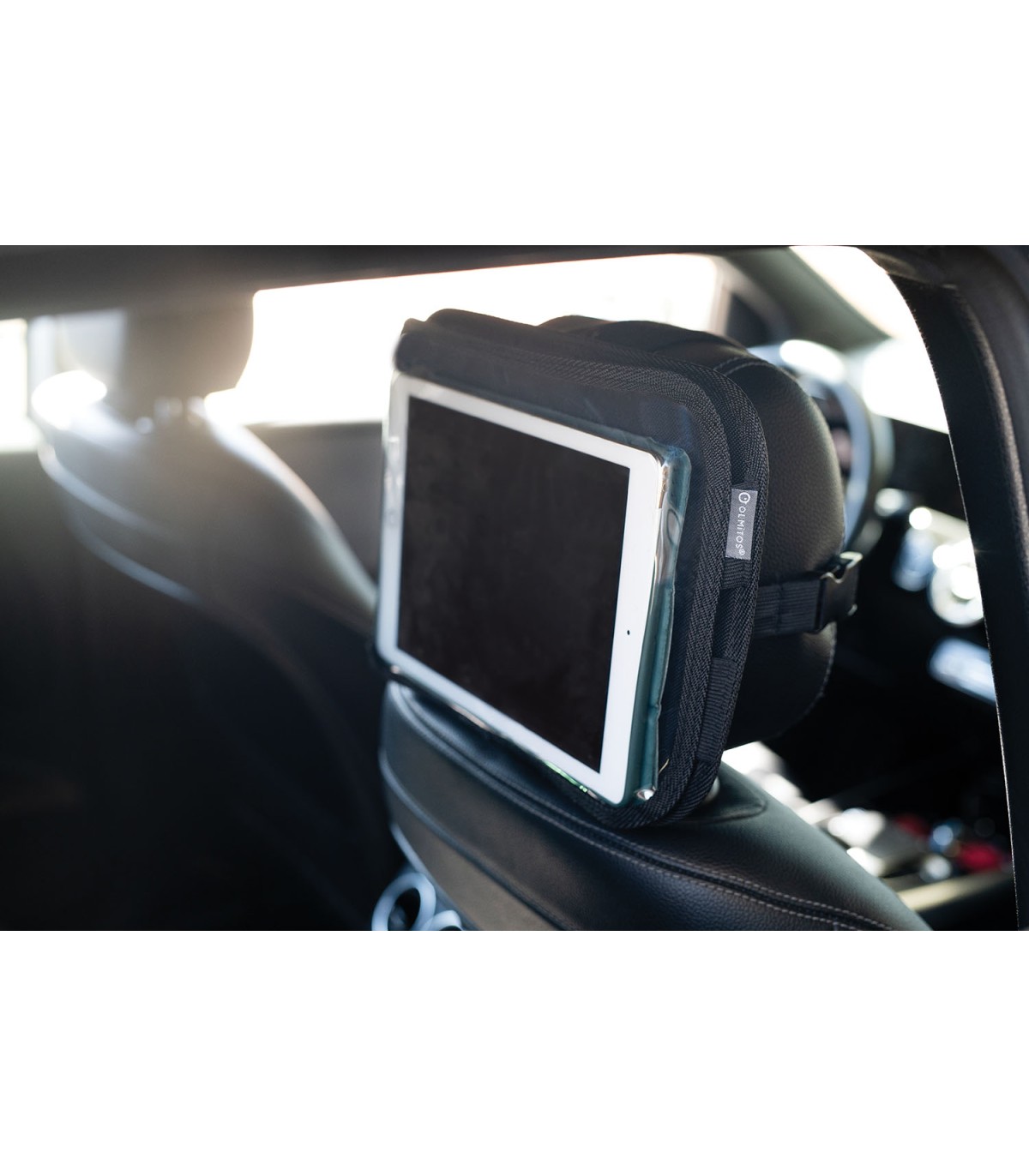 Instala-se facilmente no encosto de cabeça com suas correias ajustáveis.