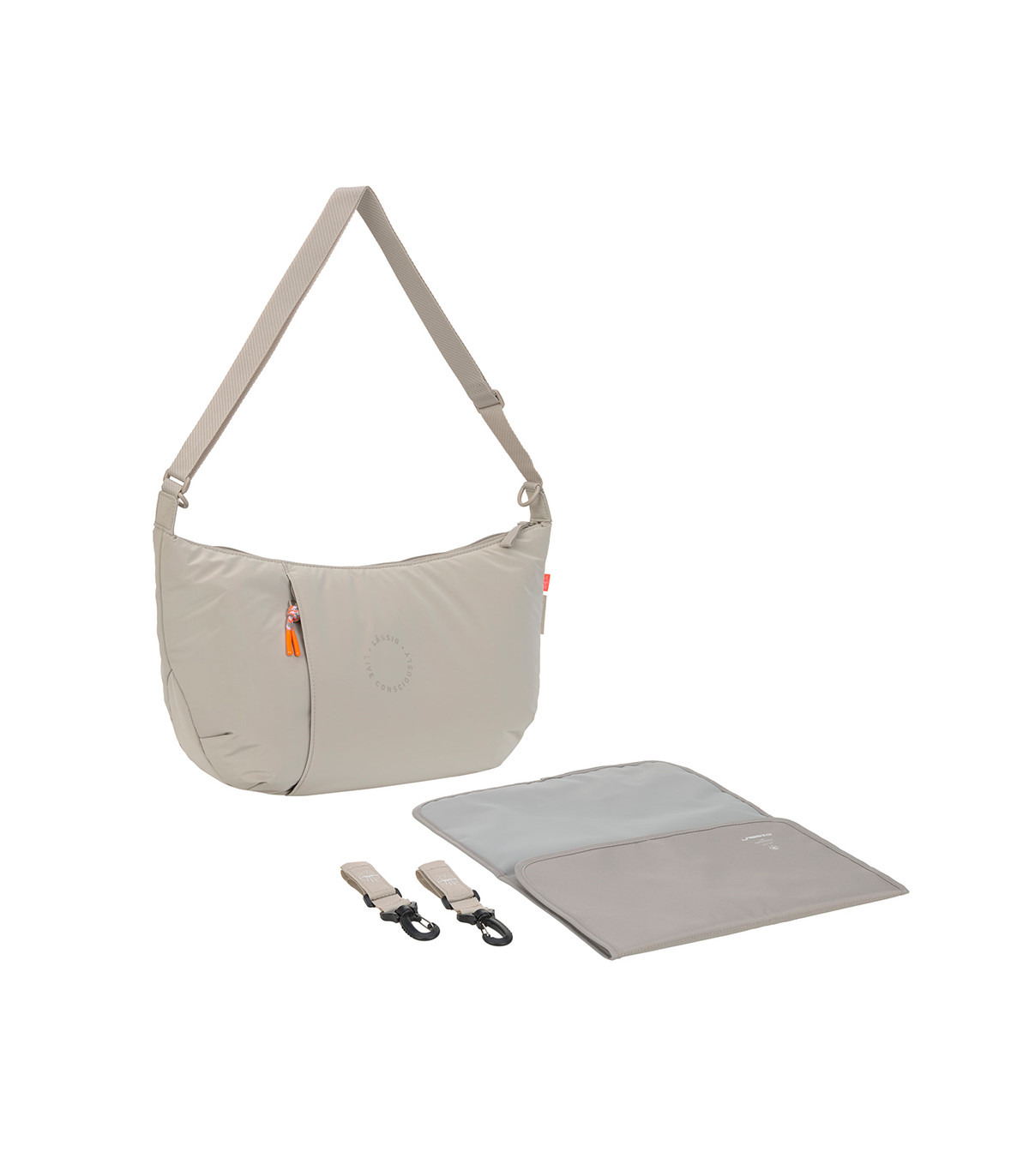 - Compartimento principal espaçoso com um interior organizado que oferece espaço para o telemóvel, as chaves, a chupeta, o peluche, etc.