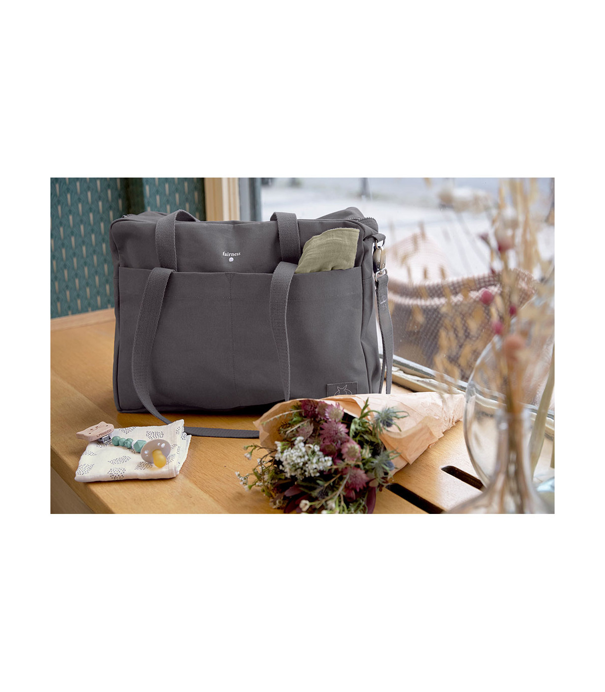 Feito de algodão orgânico! A nova mala de fraldas Cotton Esential da Lässig é fabricada com materiais ecológicos que cuidam do meio ambiente. Seu acabamento externo é repelente à água e vem equipado com trocador, ganchos para o carrinho e uma alça de ombro. Possui grande capacidade de armazenamento e diferentes bolsos organizadores.