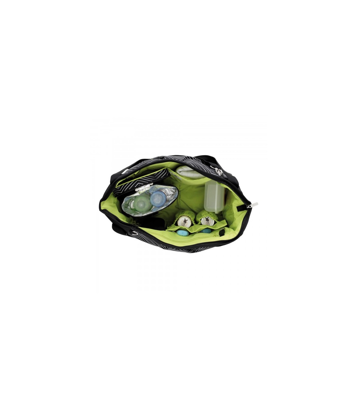 - Com porta-biberões duplo, muda-fraldas espaçoso, porta-chupetas e nécessaire incluídos.