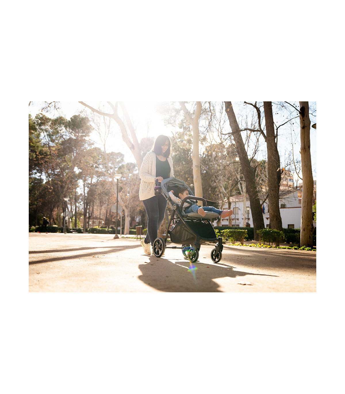 - Capota XXL com duplo sistema de zíper, ventilação, viseira e proteção UPF 50+.