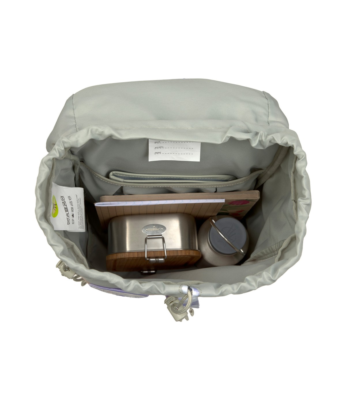 - Materiais: 100% poliéster (feito de material reciclado).