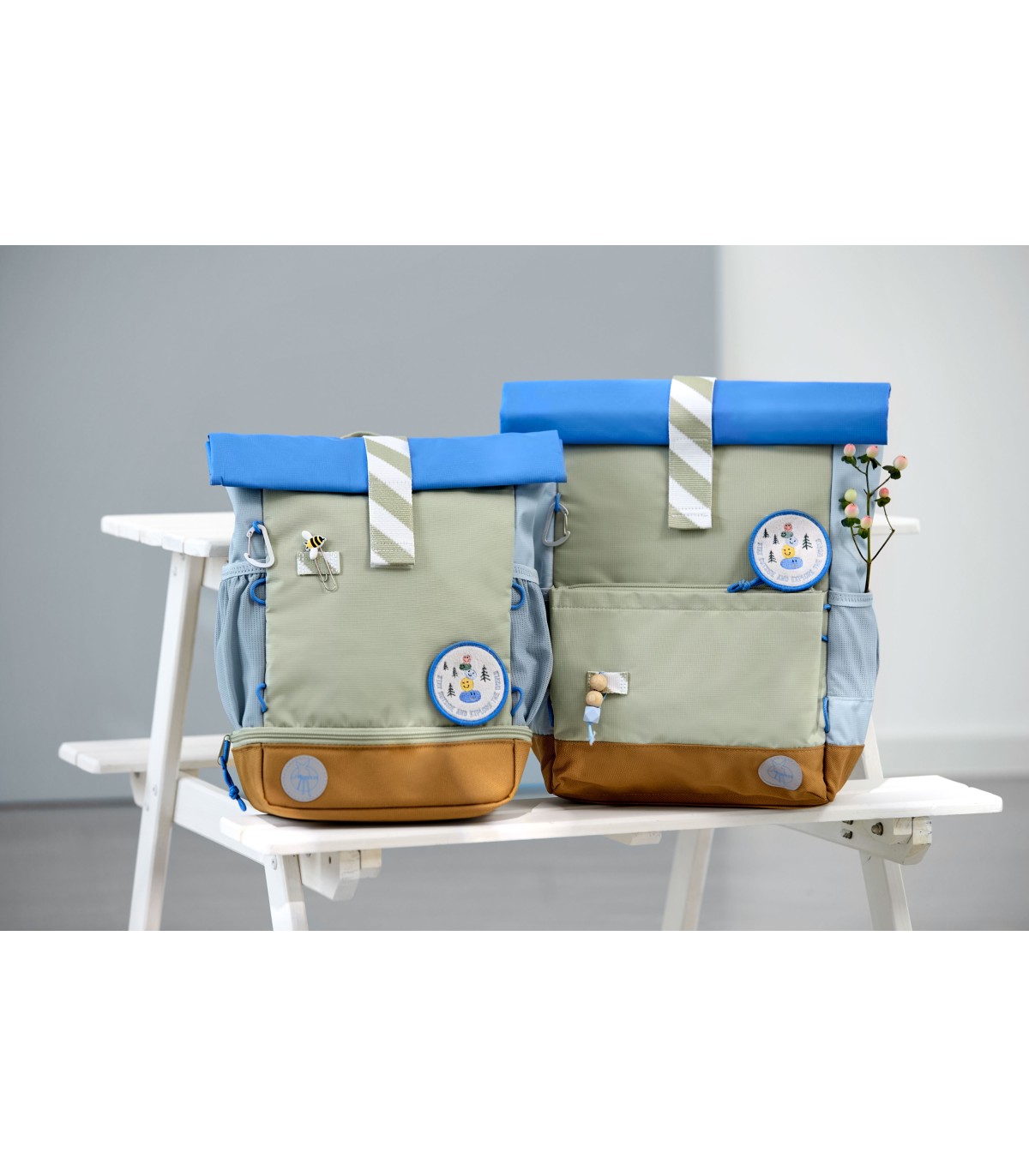 A Medium Rolltop é uma mochila de tamanho médio muito versátil para ir para a escola, viagens escolares, excursões ou para a primeira festa do pijama. Em seu amplo compartimento principal, é possível guardar livros, cadernos e pastas, podendo aumentar sua capacidade de 12 a 15 litros desenrolando a parte superior.